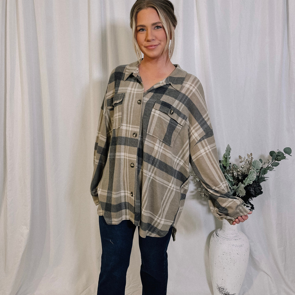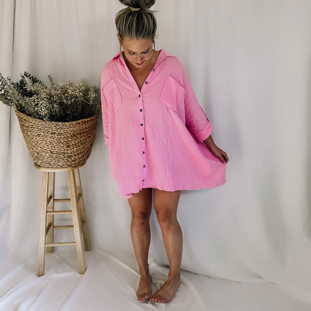 Pick Of The Patch Button Up Shirt Dress - Tan - LAST ONE
