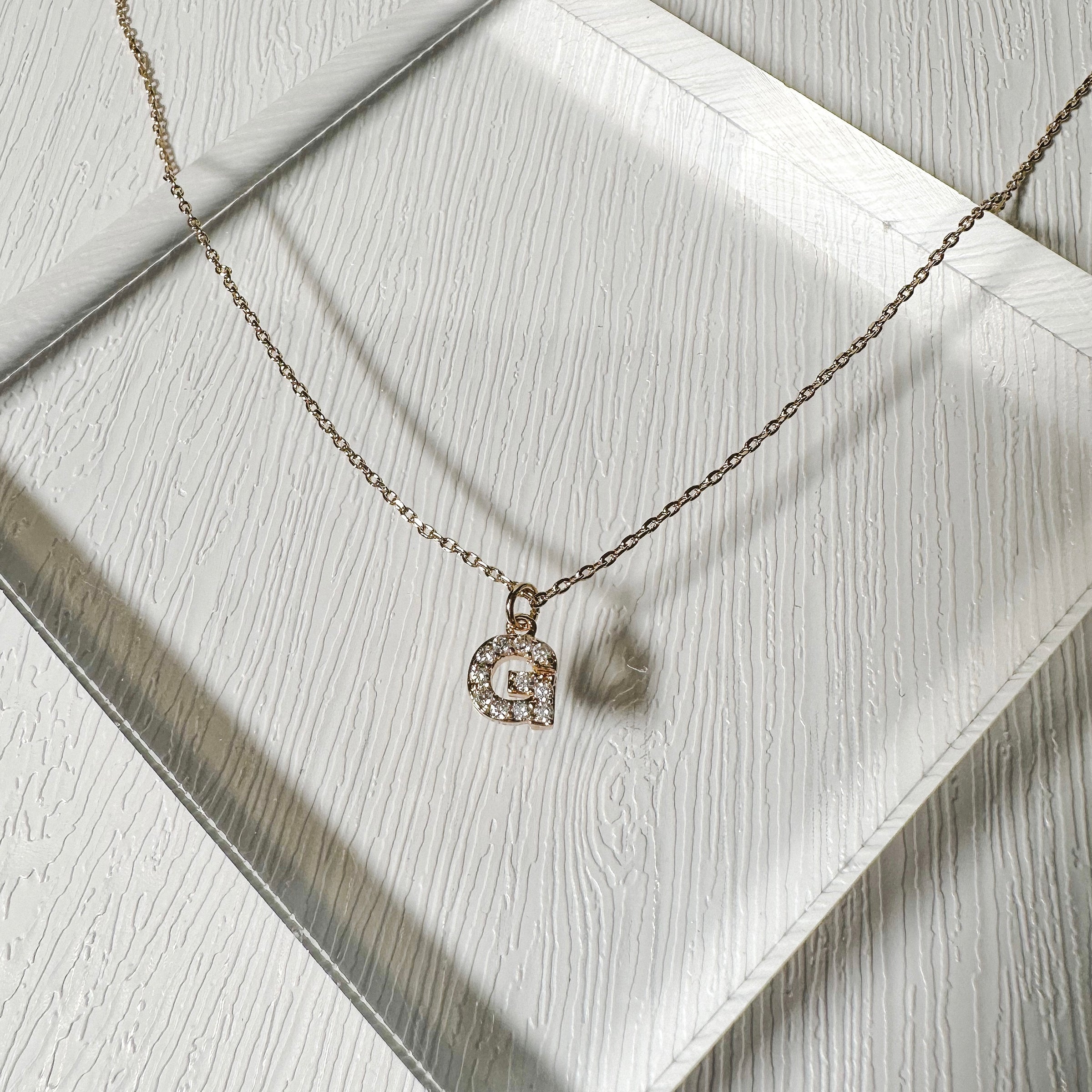 Gold chained necklace with a rhinestone initial. The perfect gift for yourself or for someone special!